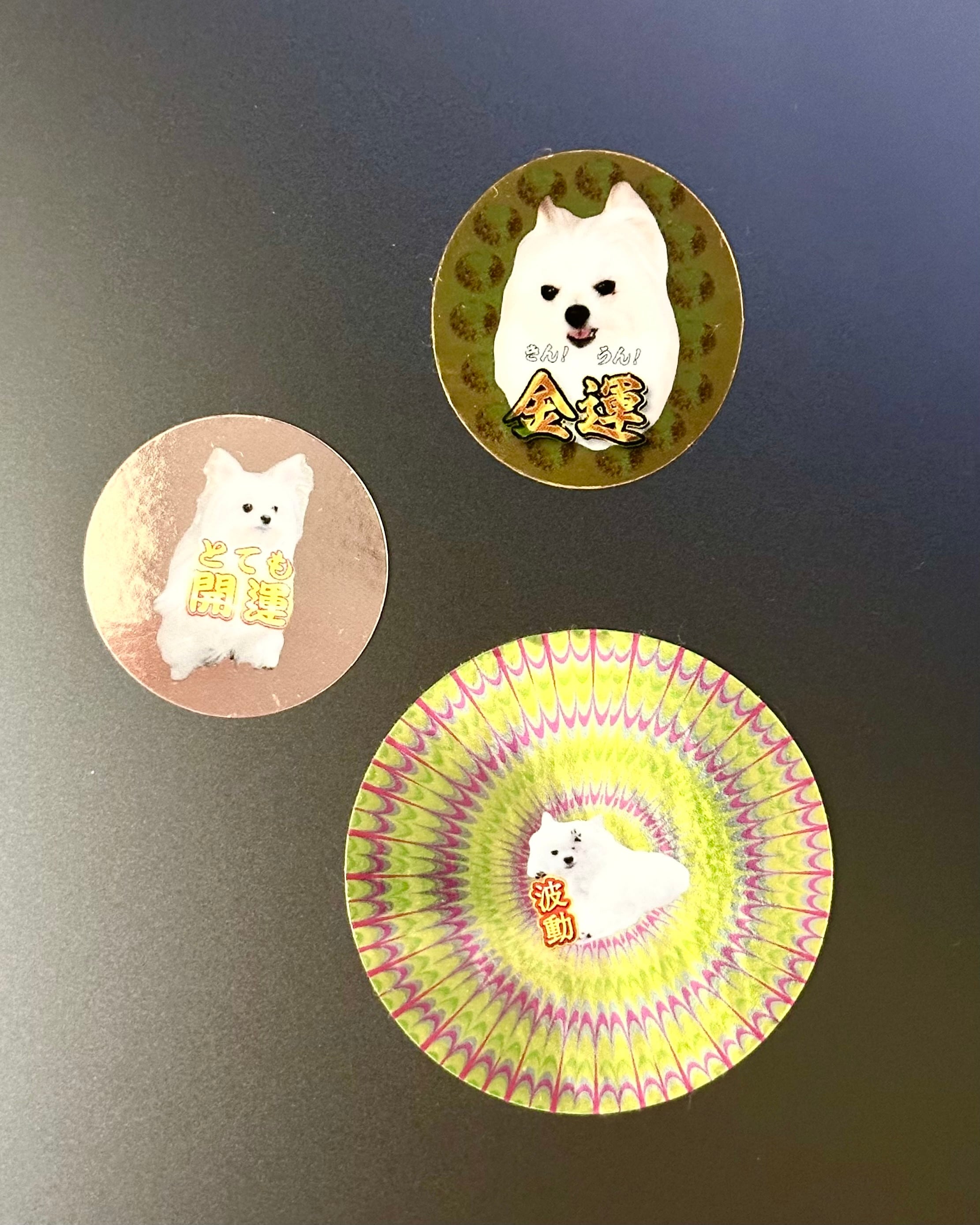 くじ引き(おひとり様3回まで)と犬の毛キーホルダー(開運っぽいステッカー1枚付き)、ミニ複製犬の購入ができます!